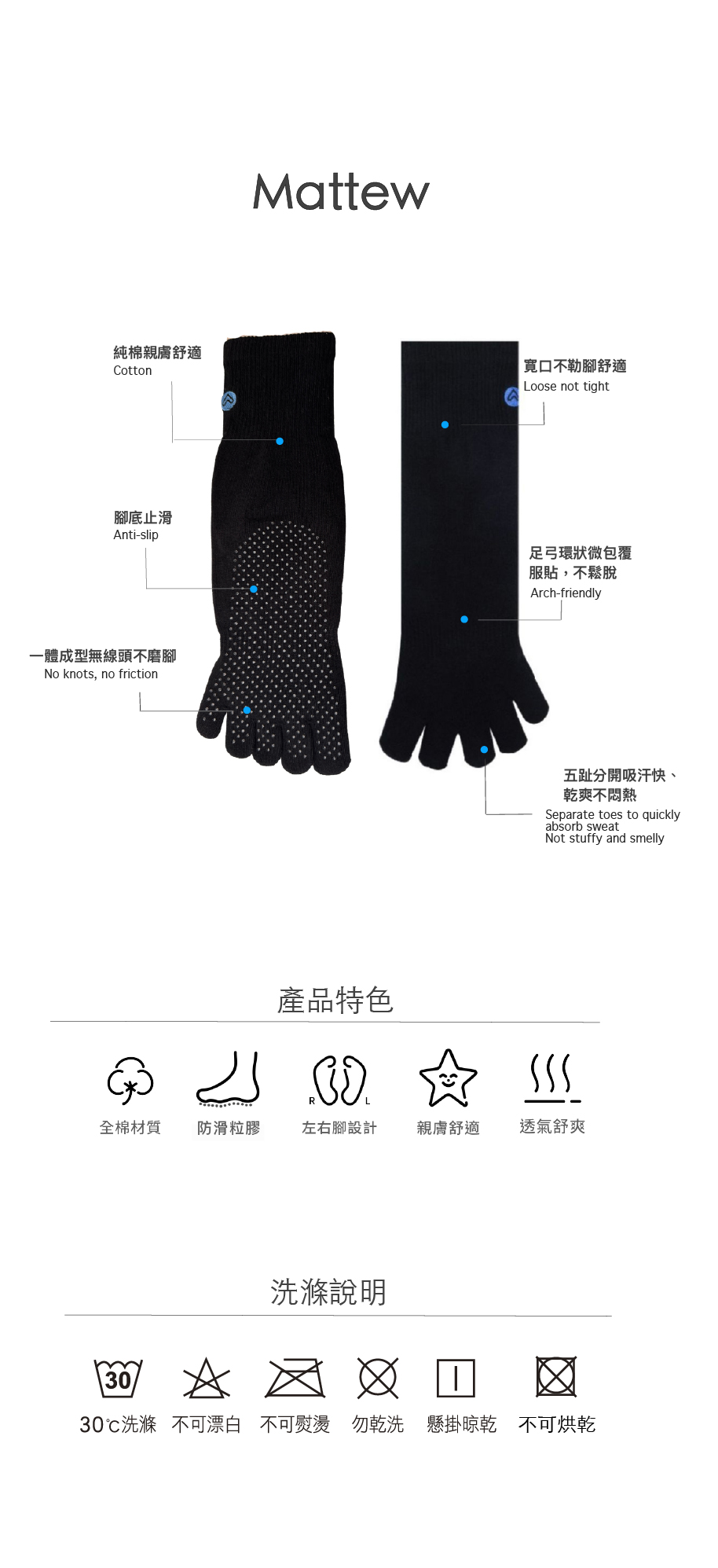 專為追求舒適與機能的你設計,Mattew 五趾止滑襪帶來全方位升級的穿著體驗。