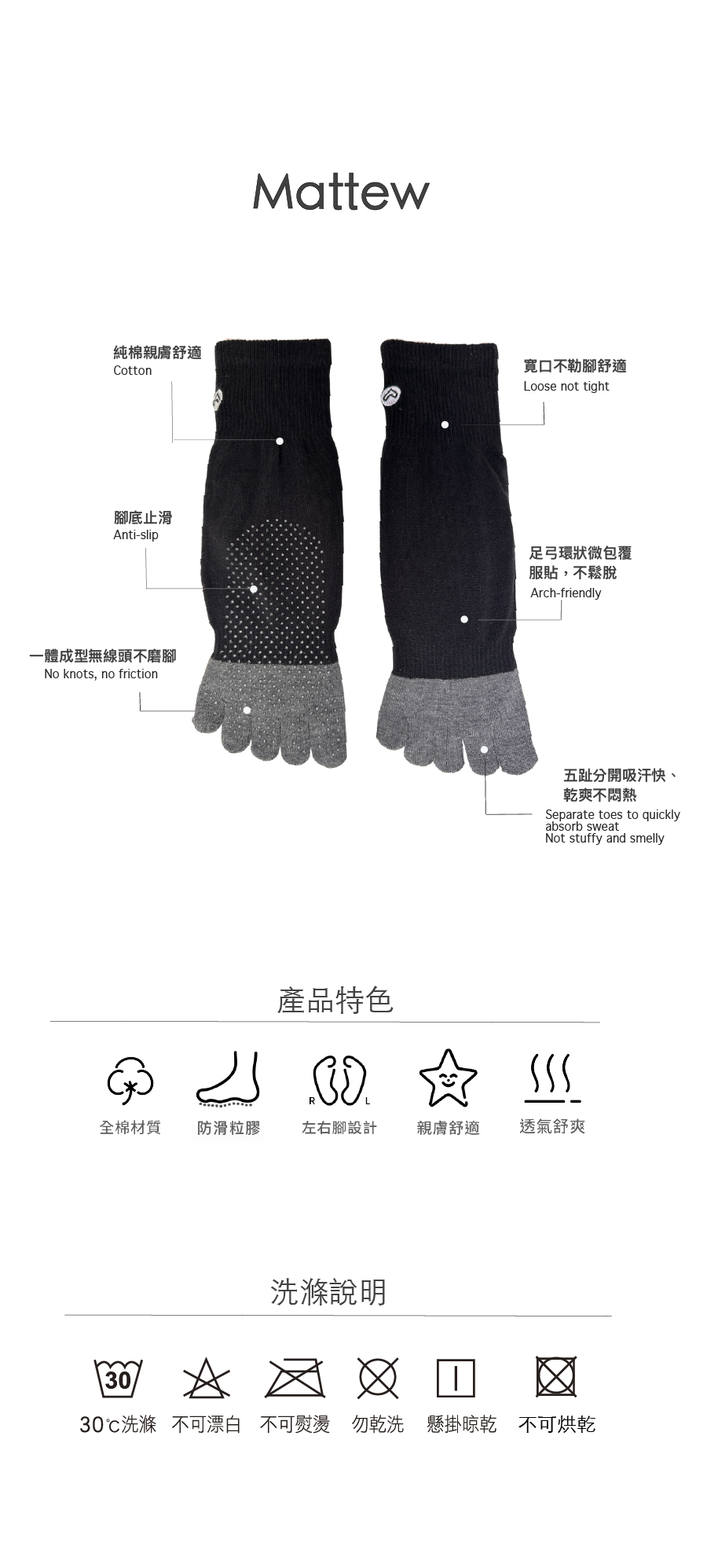 專為追求舒適與機能的你設計,Mattew 五趾止滑襪帶來全方位升級的穿著體驗。