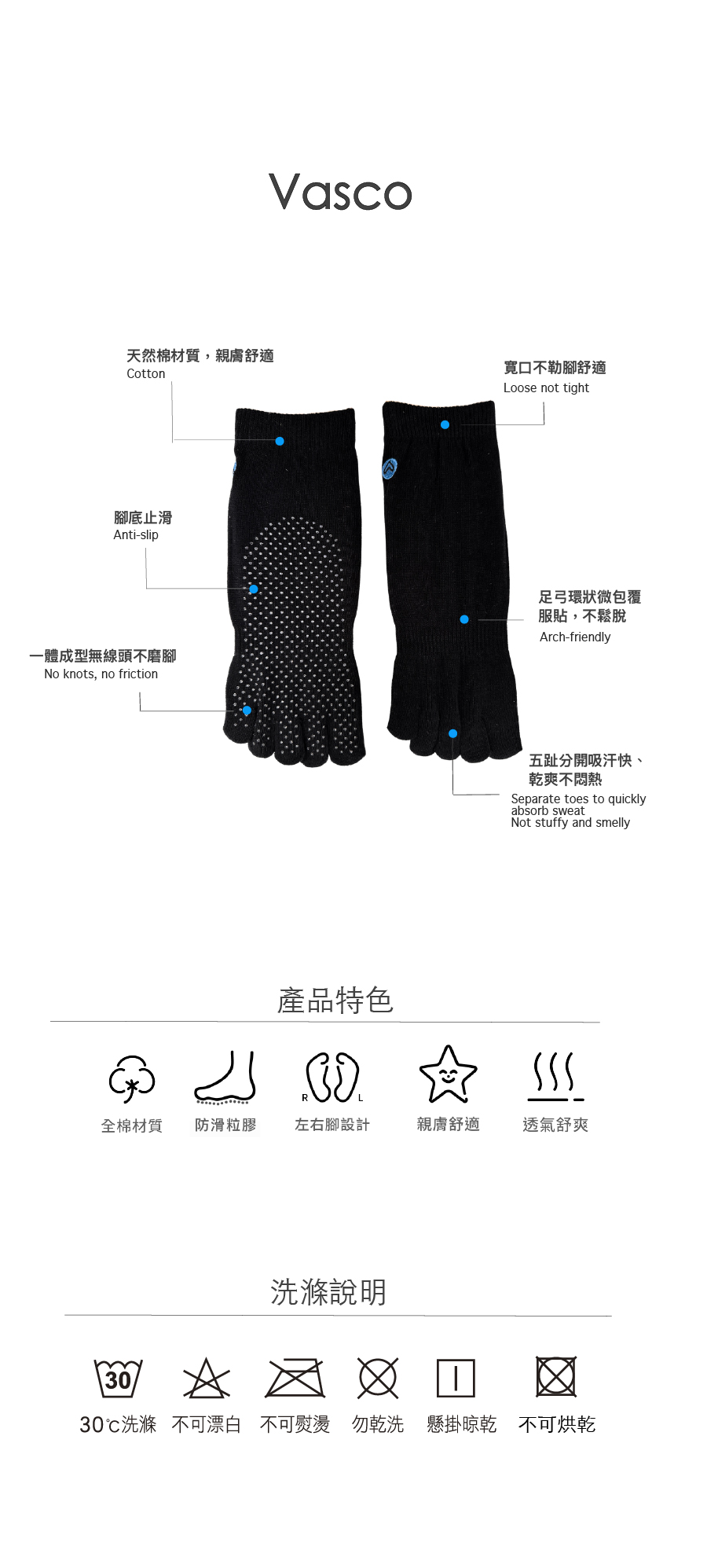 Vasco 五趾止滑短襪1 雙,為追求清爽舒適與穩定支撐的你而設計。
